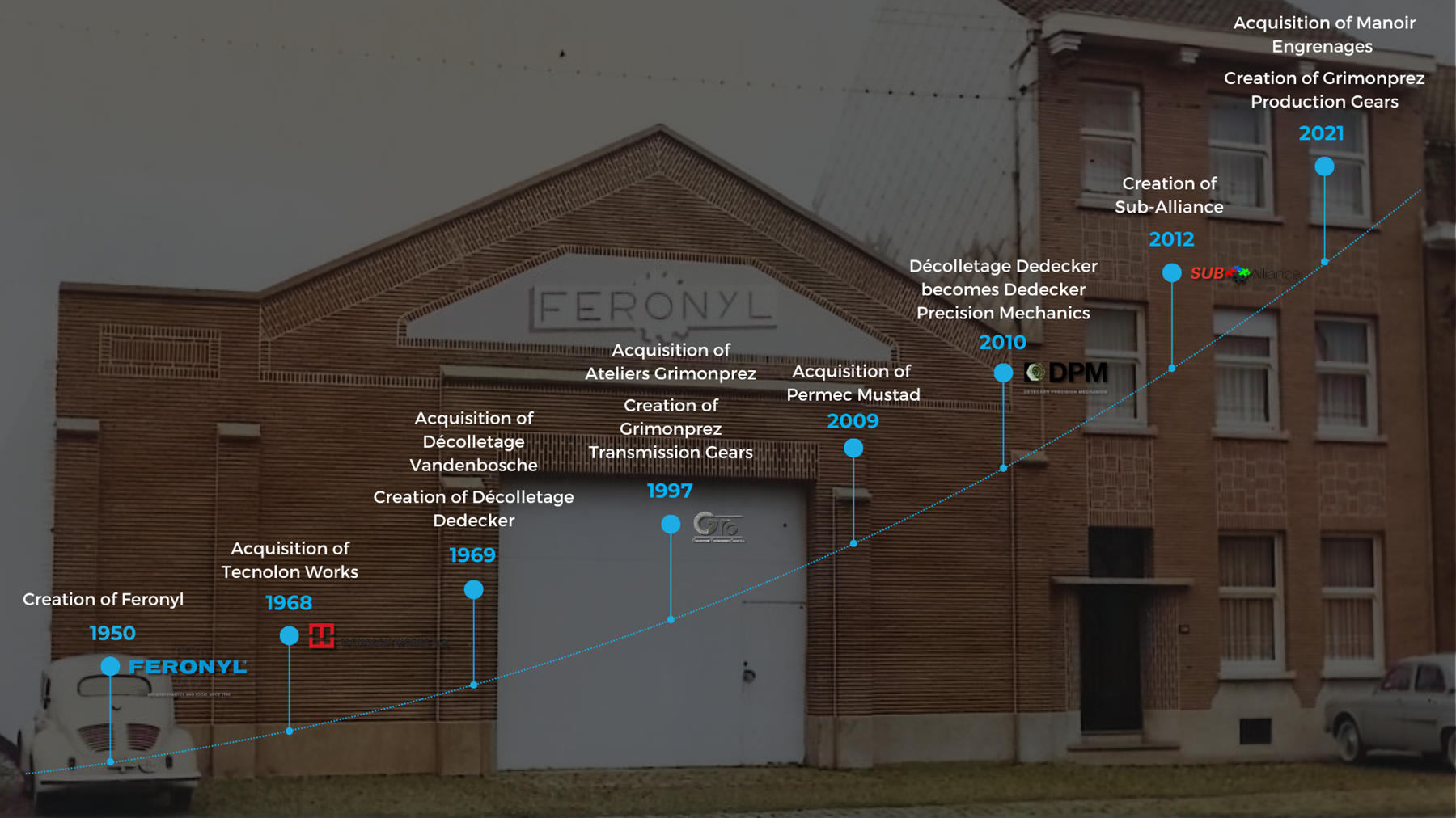 The story begins in 1950 with the creation of FERONYL by Mr Liévin DEDECKER and since then we have been constantly integrating our expertise in order to best meet your requirements in terms of quality, cost and innovation.